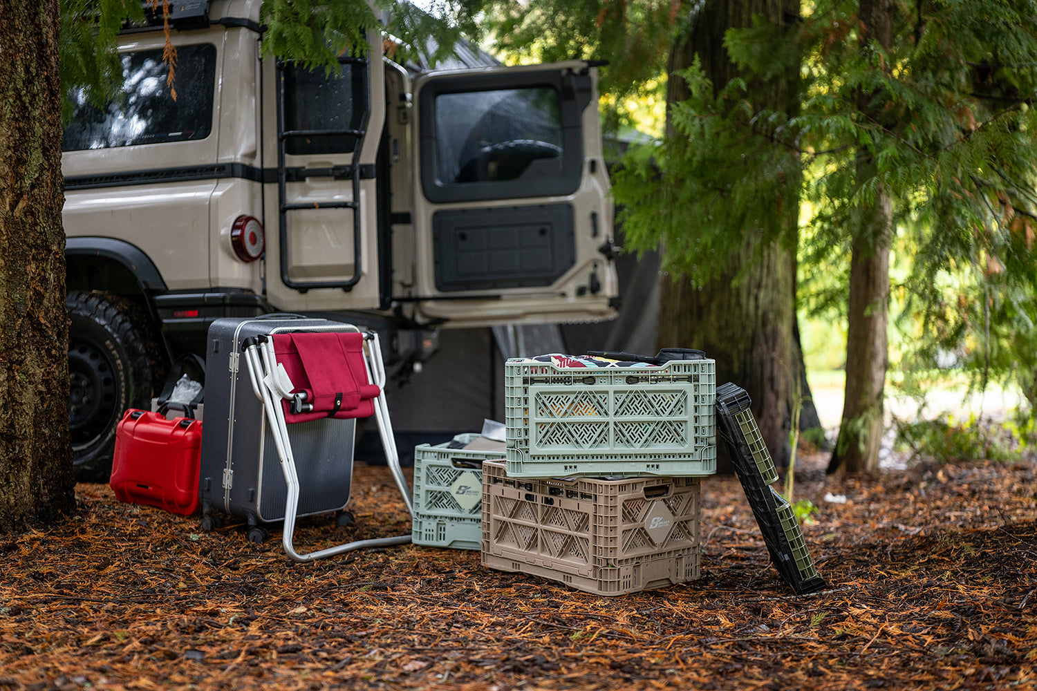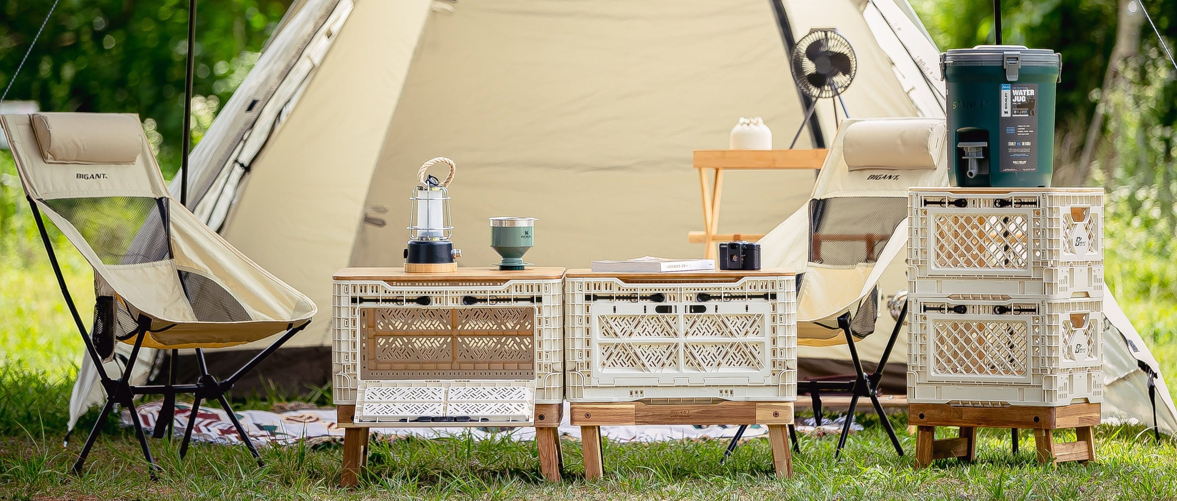 Keep your camping gear organized and ready for any adventure with easy-to-pack, space-saving crates.